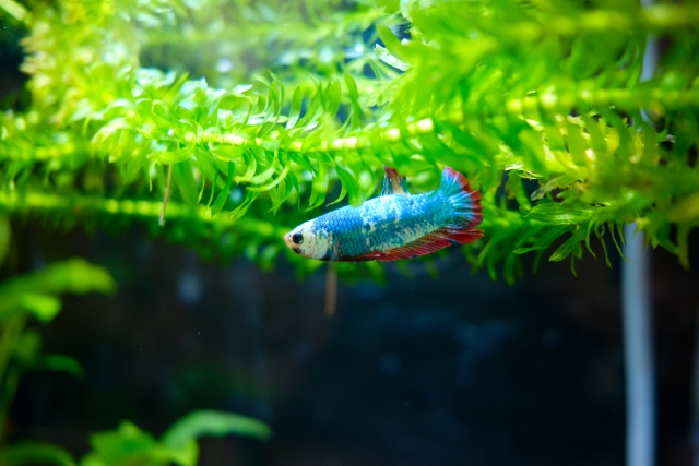 また、レイアウト素材を詰め込みすぎると、ベタの泳ぐスペースが狭くなってしまいます。、ベタがゆったりと泳げる空間を確保しましょう。シンプルに、水草を植えただけの水槽でも十分楽しめます。