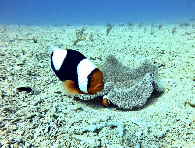 内湾に生息するトウアカクマノミ