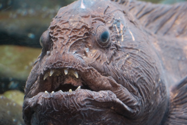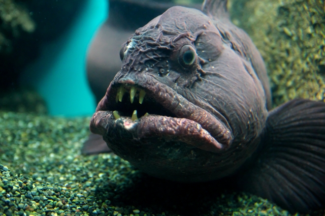 - オオカミウオは強靭なアゴと歯で貝や甲殻類を砕くハンター