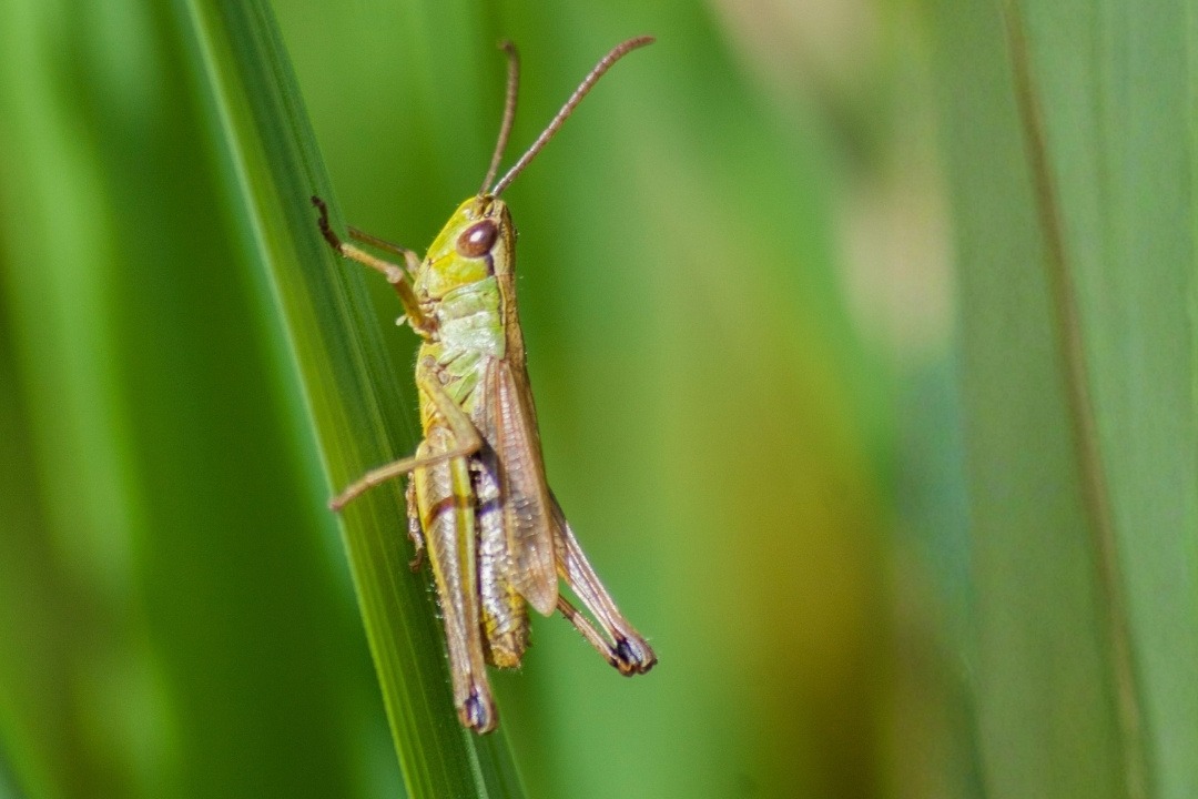 バッタは草むらや田んぼ、道端などの身近な場所で出会える昆虫です。バッタの多くは、周囲の環境に溶け込めるように、保護色の緑や茶色・灰色の体色を持ち、捕食者から身を隠して暮らしています。