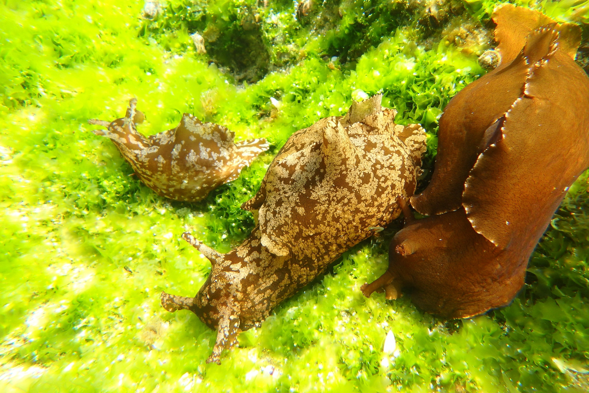 アメフラシは、浅い海にすむ巻貝の仲間で、動きはゆっくり。外敵から身を守る殻もほとんど持たず、派手な色や力強い動きでアピールすることもできません。