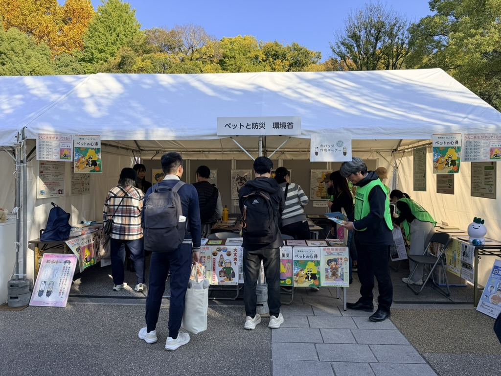 環境省のブースでは、いざというときの動物と防災のあり方のレクチャーを受けられたり、うんこドリルとタッグを組んで作成された、わかりやすいリーフレットも配布されていました。