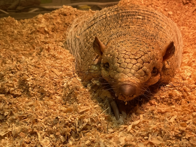 鎧のような体をまん丸にする様子は、アルマジロらしさを体感できる貴重な瞬間です。