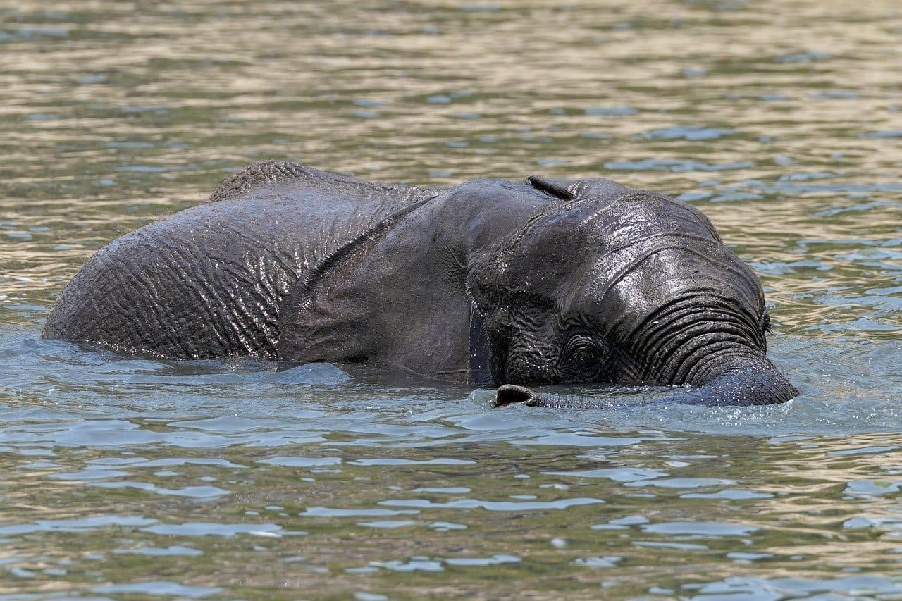 大きな足の裏は水かきを持たないものの、パドルのように水を押し出す役割を果たし、ゾウは驚くほどスムーズに泳ぐことができます。