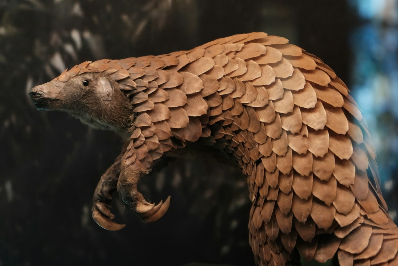 アルマジロのような硬いウロコに、つぶらな瞳。まるで木彫りの彫刻のような姿を持つセンザンコウは、絶滅が危惧される動物の1種です。