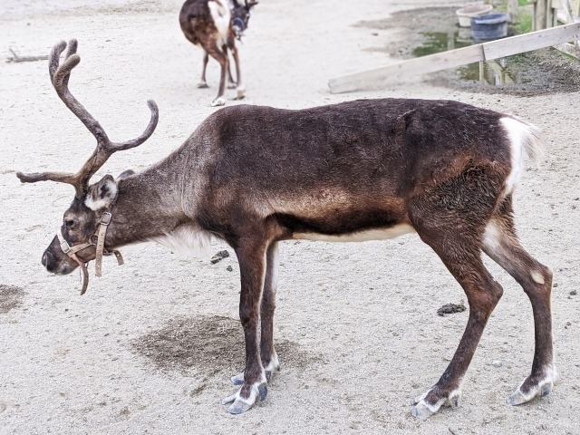 トナカイはシカ科の中でも特に寒冷地での生活に適応した特徴を多く備えています。最大の特徴は、雌雄どちらも角を持つ唯一のシカ科の動物であること。角は季節ごとに生え替わり、群れの中でのコミュニケーションや雪を掘って地面の植物を探す際に役立ちます。