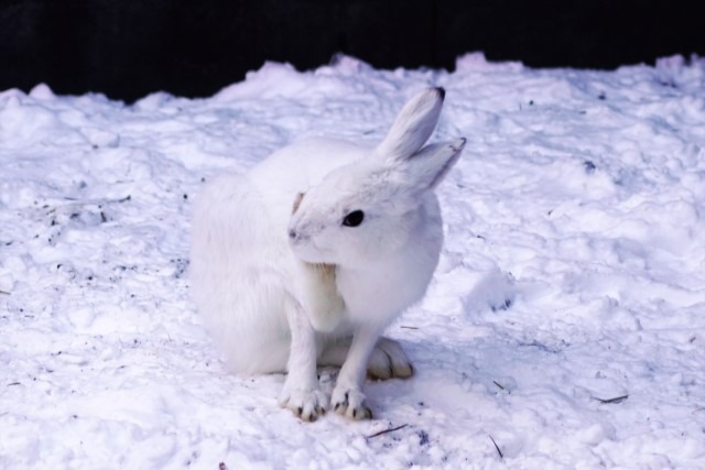 北海道やシベリアに生息するユキウサギは、冬は純白の体に、夏は茶色の体になります。夏毛への変化は『日照時間が11時間以上』が目安となっており、3月から5月頃にかけて徐々に生えかわります。これもライチョウと同様に、捕食者から身をまもるための工夫です。