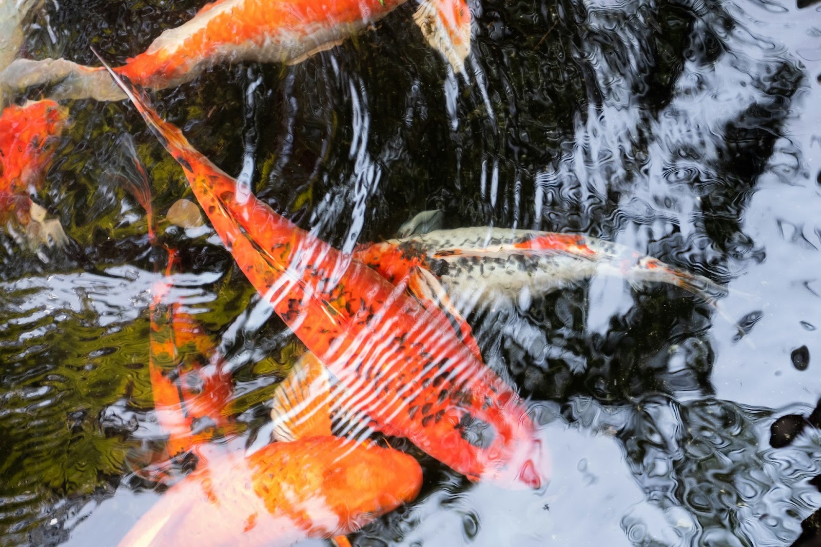 ニシキゴイも食べる餌により色が変わります。見た目の美しさが重視されやすいニシキゴイは、餌の成分調整により鮮やかに発色させる『色揚げ』のプロセスが大切。バランスよく栄養を摂らせることで、全体的に美しい発色が維持されます。