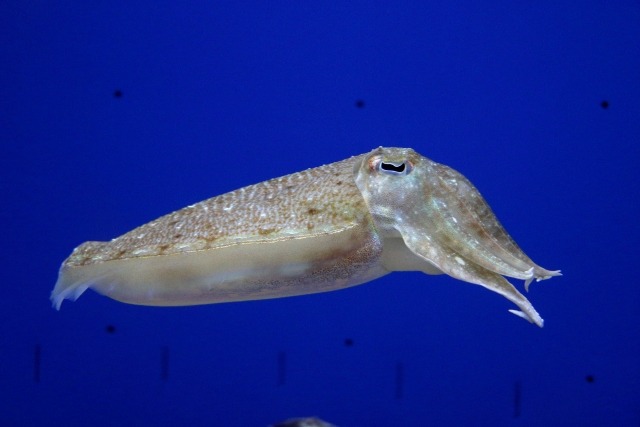多くのイカは『ツツイカ類』ですが、カトルフィッシュは『コウイカ類』のイカ。『クロマトフォア』『イリドフォア』『ルコフォア』という赤・黄・褐色の色素を持ち、白から黒まであらゆる体色を作り出します。