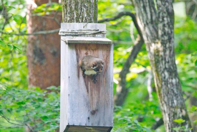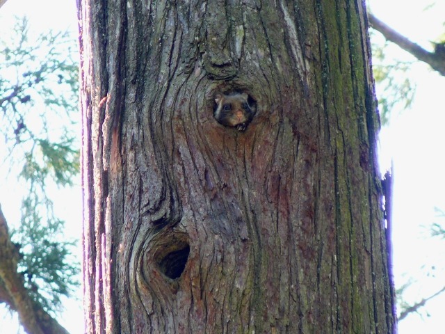 ムササビは、古木にある樹洞(じゅどう)をすみかとしています。自然の樹洞が少ない場所では巣箱を利用することも。樹洞は外敵から身を守りやすく、内部の温度が安定しているため、休息や子育てに適した環境です。
